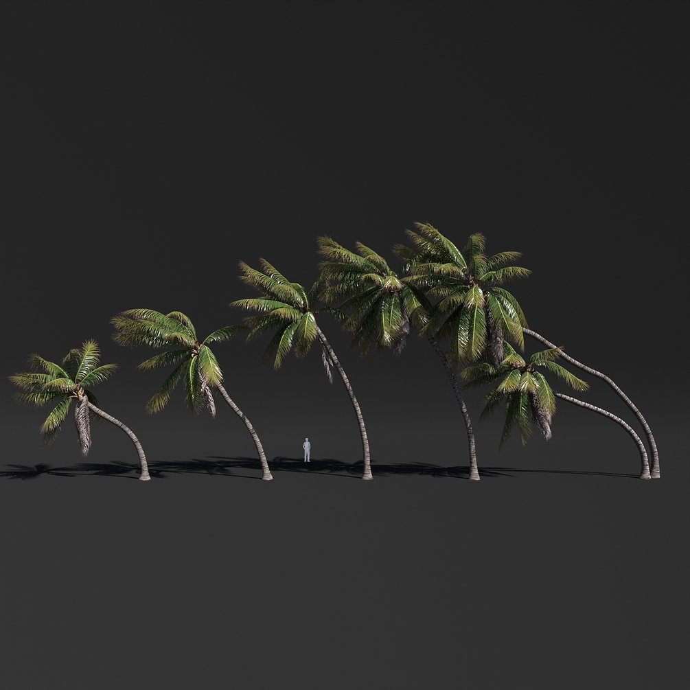 High polygon realistic model of coconut palm tree Originally created with 3dmax2017  2 types of tree geometry, one at static state, and the other is with wind simulated